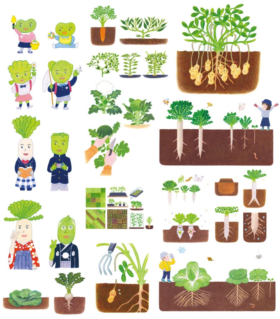 2022年もNHK出版『やさいの時間』でたくさん挿画を描かせていただきました! デザインは鍋田哲平さまです! 各野菜の品種の名前を読むのを毎号ひそかに楽しんでいます。(東京お日様ベリーとか)